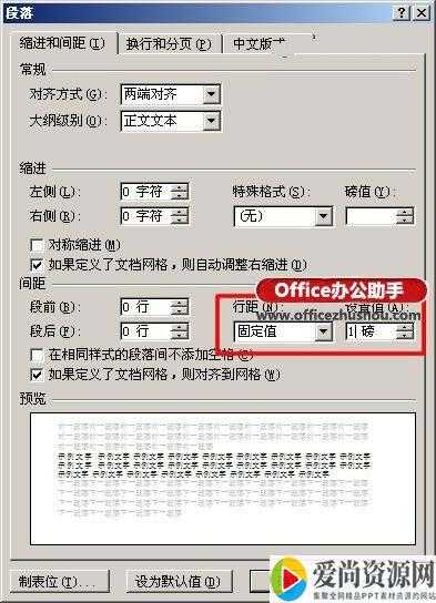 如果空白页只有一行无法删除,我们可以先将光标定位到空白页上,然后右键选择“段落”,在“段落”对话框中将“行距”设为“固定值”,设置值设为“1磅”,然后确定,空白页就删除了。