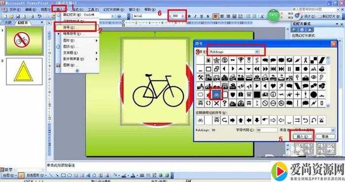5、点击文本框,在编辑页面画一个文本框——让文本框处于输入状态——点击插入——符号——字体选择Webdings——找到自动车符号选择并点击插入——接着选择整个文本框——字体大小设置300并按回车(这个数值由自己输入来调整确定是否合适)。