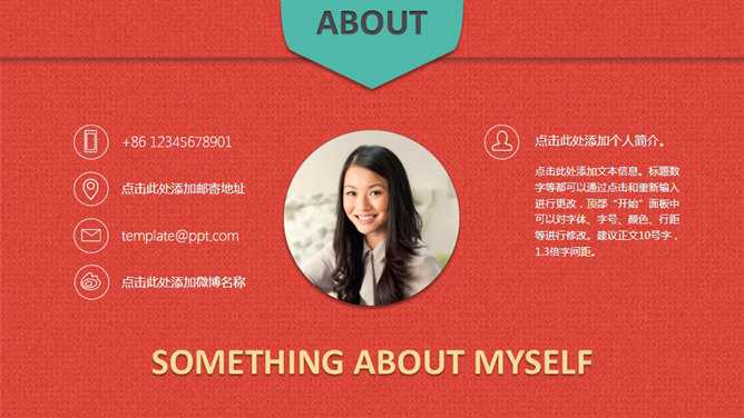 当前位置: 首页PPT模板个人简历正文 声明:本站所有文章,如无特殊说明或标注,均为本站原创发布。任何个人或组织,在未征得本站同意时,禁止复制、盗用、采集、发布本站内容到任何网站、书籍等各类媒体平台。如若本站内容侵犯了原著者的合法权益,可联系我们进行处理。ppt个人简历模板 华夏行水管理员永久会员 打赏 收藏 海报 链接