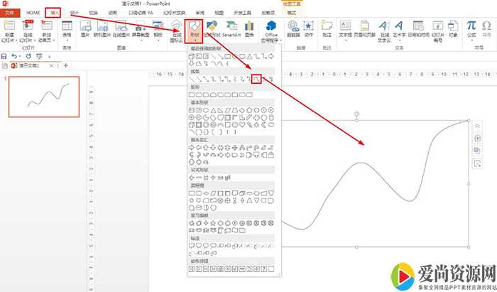 插入——形状——曲线——用曲线画出彩灯的线条。