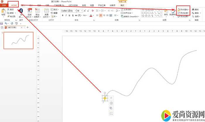 HOME——形状填充,选择橙色——形状轮廓设置为无轮廓。