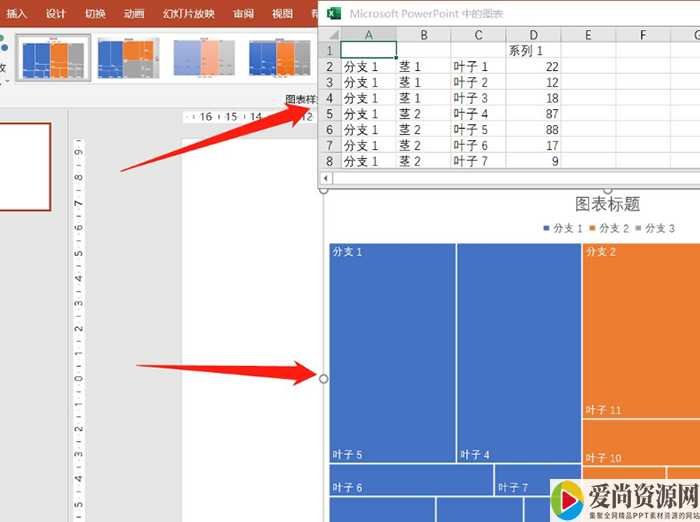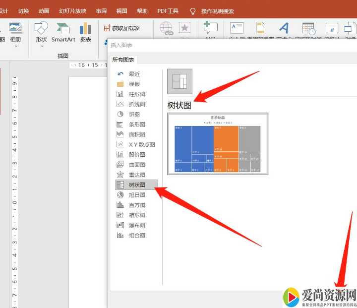 进入插入页面,点击上方的【图表】进入。在树状图点击下方的【确认】修改数据即可插入图表。