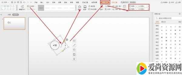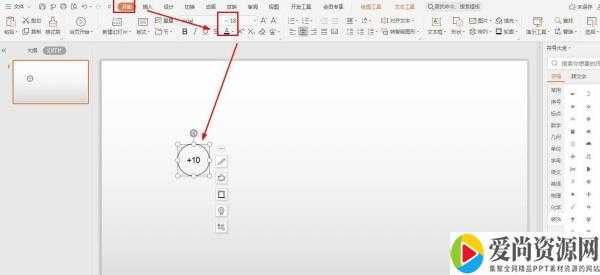 3.选择圆形——开始——设置字体颜色为黑色,字号设置为18——输入:+10。