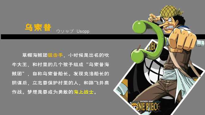 当前位置: 首页PPT模板卡通模板正文 声明:本站所有文章,如无特殊说明或标注,均为本站原创发布。任何个人或组织,在未征得本站同意时,禁止复制、盗用、采集、发布本站内容到任何网站、书籍等各类媒体平台。如若本站内容侵犯了原著者的合法权益,可联系我们进行处理。ppt人物海贼王 华夏行水管理员永久会员 打赏 收藏 海报 链接