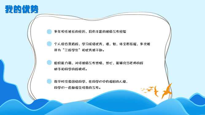 当前位置: 首页PPT模板教育模板正文 声明:本站所有文章,如无特殊说明或标注,均为本站原创发布。任何个人或组织,在未征得本站同意时,禁止复制、盗用、采集、发布本站内容到任何网站、书籍等各类媒体平台。如若本站内容侵犯了原著者的合法权益,可联系我们进行处理。ppt卡通班干部 华夏行水管理员永久会员 打赏 收藏 海报 链接