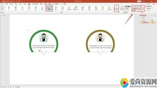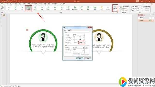 圆形图案加“飞入”动画,方向从下向上,设置效果,调整弹跳结束数值(图5)。