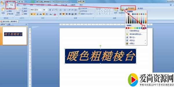 2.在下拉选项中选择橙色的填充 强调文字颜色 暖色粗糙棱台