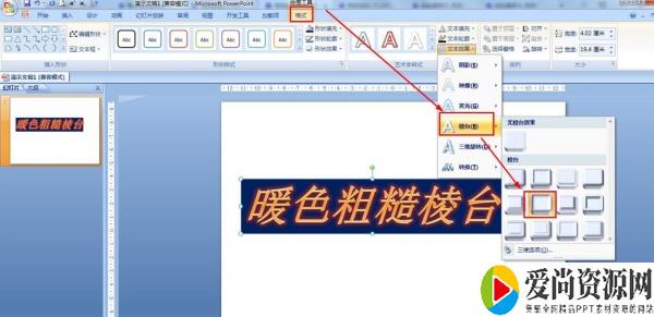 5.格式——文本效果——棱台,设置其它的棱台效果。