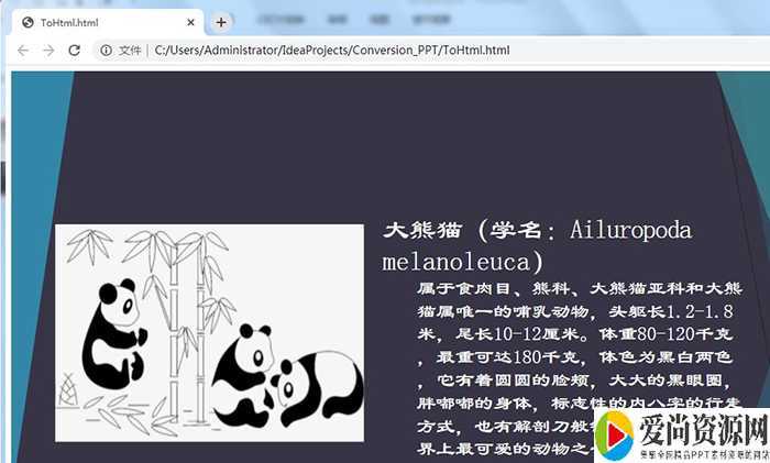 执行程序,生成HTML文件。以上代码中的文件路径为IDEA项目文件夹路径,即C:\Users\Administrator\IdeaProjects\Conversion_PPT\ToHtml.html,可在此路径下查看生成的HTML文件,文件路径也可以自定义为其他路径。