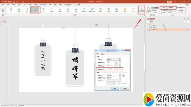 复制几个图形,然后添加“飞入”动画,方向选择“由上向下”,播放选择“上一个动画之后”,飞入效果中选择“弹跳结束”设置“3秒”(图2)。