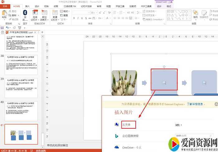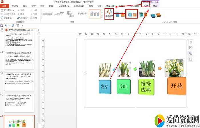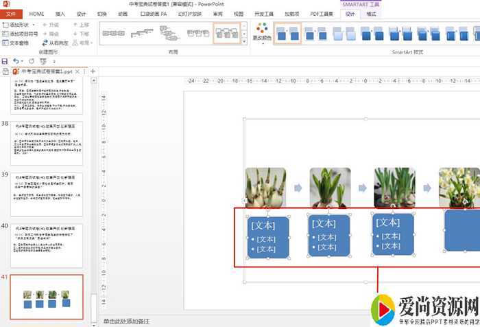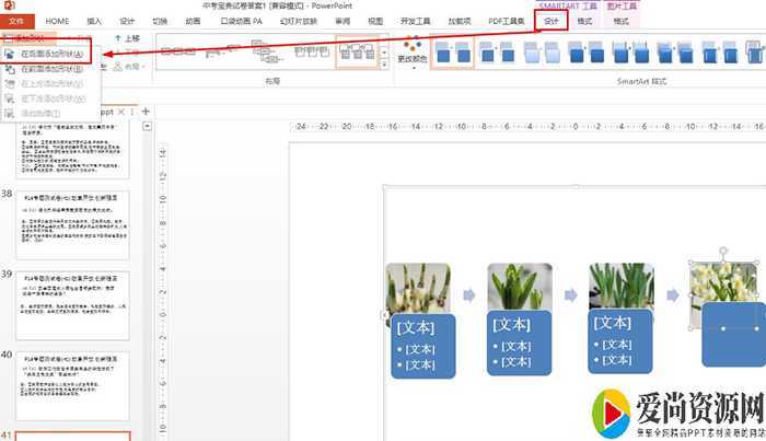 SmartArt工具的设计——添加形状——在后面添加形状,继续插入水仙成长过程图片。