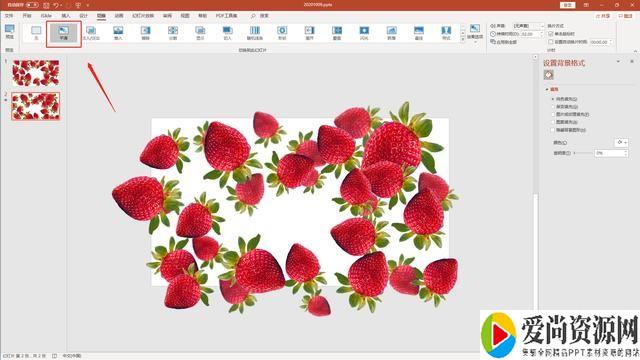 复制制作好的幻灯片,然后全选所有的草莓素材,向下垂直移动并且旋转(图3)。