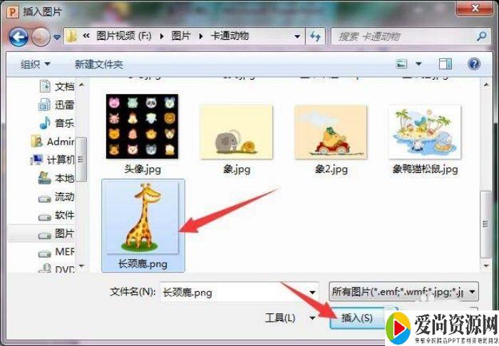 3、弹出插入图片对话框,找到需要制作倒影的图片,点击插入按钮。