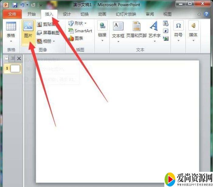 2、进入PPT后点击插入选项卡,在图像功能区中点击“图片”按钮。