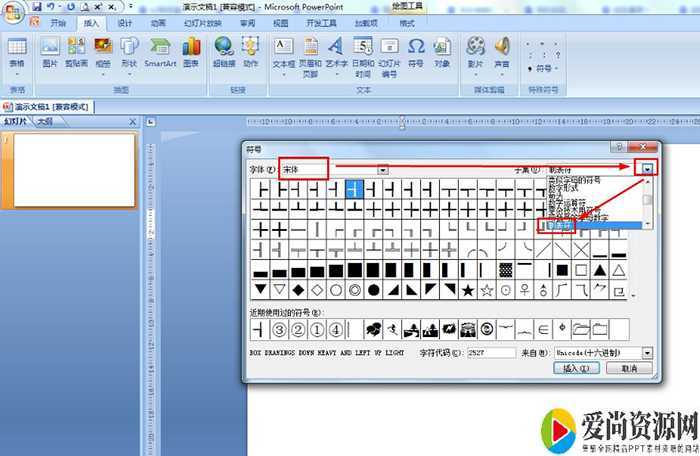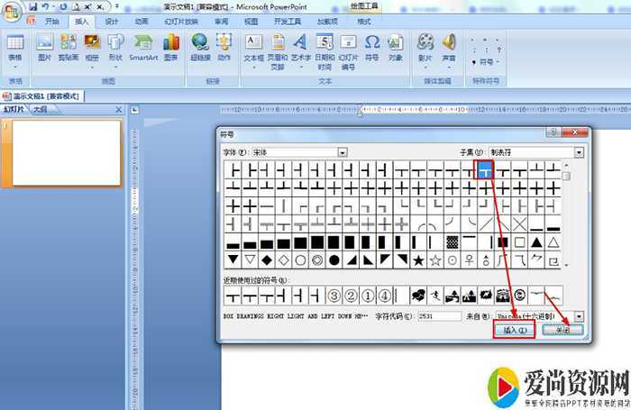 选择要插入的制表符——点击插入,完成后点击关闭。