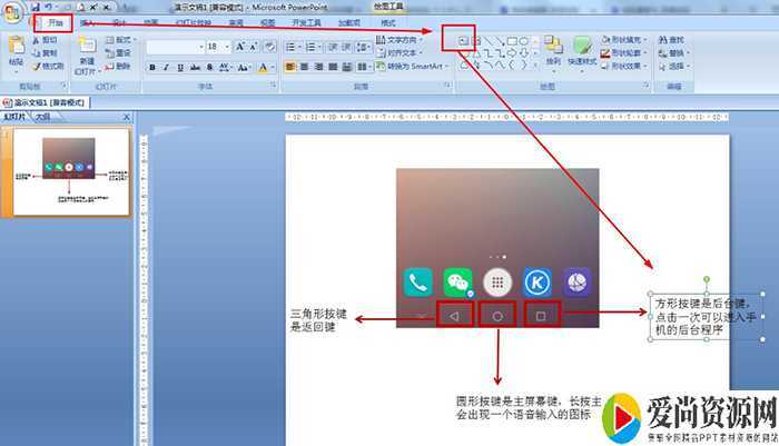 开始——绘图,选择文本框,在每个箭头的地方插入文本框并输入各个按键的功能文字说明。