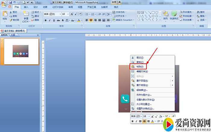 在电脑复制手机屏幕截图——在PPT中右击鼠标——粘贴图片。