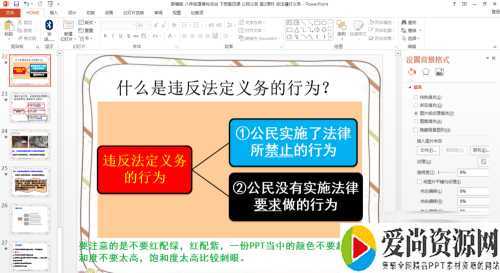 最后,要注意的是不要红配绿,红配紫,一份PPT当中的颜色不要超过三种,颜色的饱和度不要太高,饱和度太高比较刺眼。