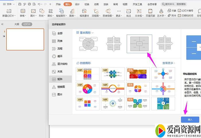 打开ppt,点击导航栏上的“插入-智能图形”中的“智能图形”