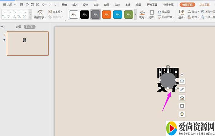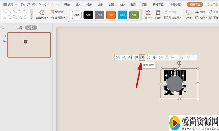 然后选中圆形和文本框,点击上方的“垂直居中”
