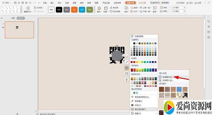 再选择“填充”选择“图片或纹理”中的“本地图片”