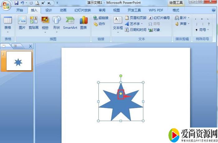 6、用鼠标拖动黄色的菱形,调整好七角星的星形大小;