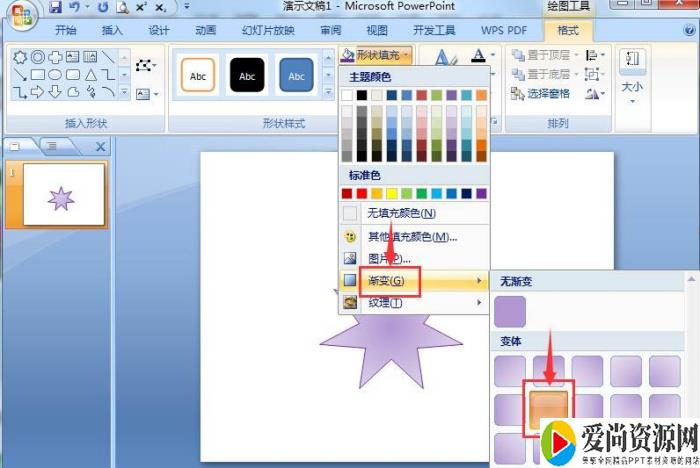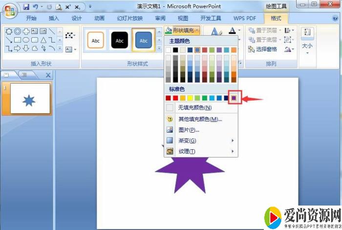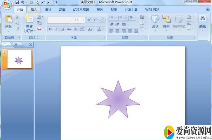 9、我们就在powerpoint2007中创建好了一个紫色渐变七角星。