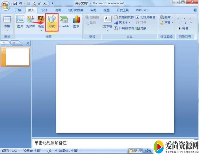 1、打开powerpoint 2007,进入其主界面;