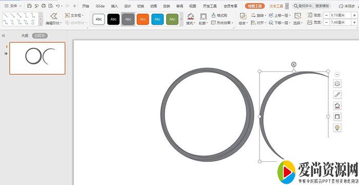 如下图所示,再选中圆环形,复制一份圆环形