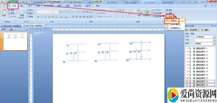 开始——选择——全选,选择正字的五个笔画——按住Ctrl键拖动复制多几个正字。
