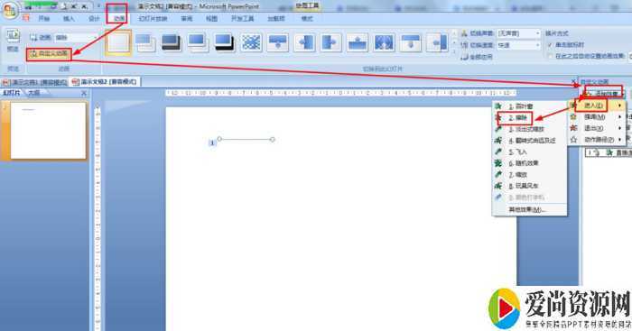 选择一横直线——动画——自定义动画——添加效果——进入——擦除,方向设置为:自左侧。