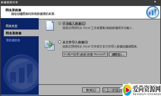 2、接下来选择数据,这里可以分成两种,如果数据比较简单,建议直接选择“手动输入数据”,如果有比较复杂的数据,或者数据由他人制作的,可以选择“从文件导入数据”,将Excel表格数据直接导入。