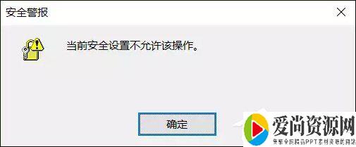 11、这时候如果你试着播放,结果绝大多数都会是下图的提示,这是由于系统的安全设置导致。修改方法也非常简单,在开始菜单中点击“运行”(或按下Win+R)然后输入“gpedit.msc”回车打开“组策略编辑器”,选择“用户配置—管理模版—Windows组件—InternetExplorer—安全功能—本地计算机区域锁定安全”,双击右侧“所有进程”点选“已禁用”,再回到PPT里单击动画播放,是不是可以了?