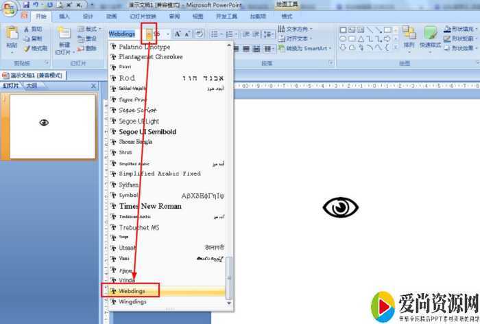 向下移动到最后——选择Webdings字体。