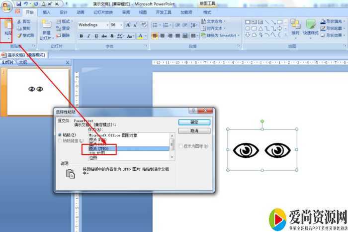 再输入一个大写字母N画出多一个眼睛——复制——选择性粘贴——选择图片JPEG。