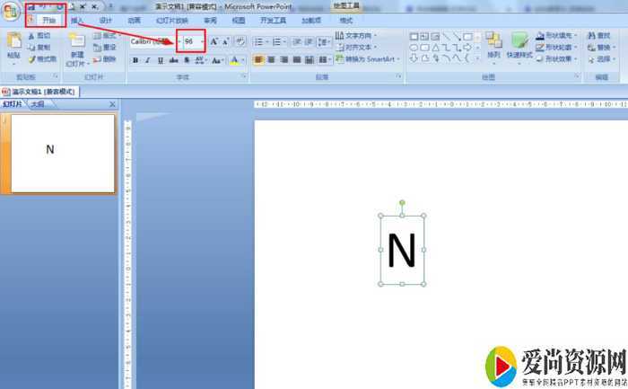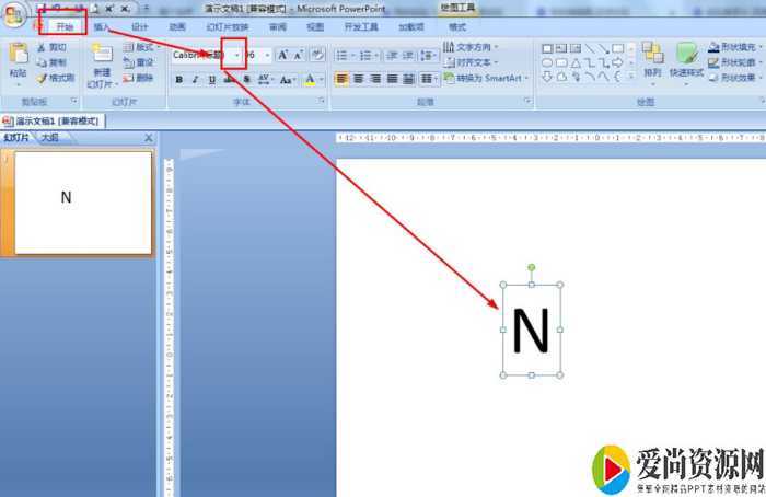 开始——绘图——文本框——输入大写字母N。