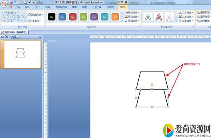 选择设置好的梯形——按Ctrl键,拖动复制一个梯形在下方。
