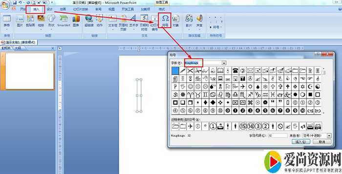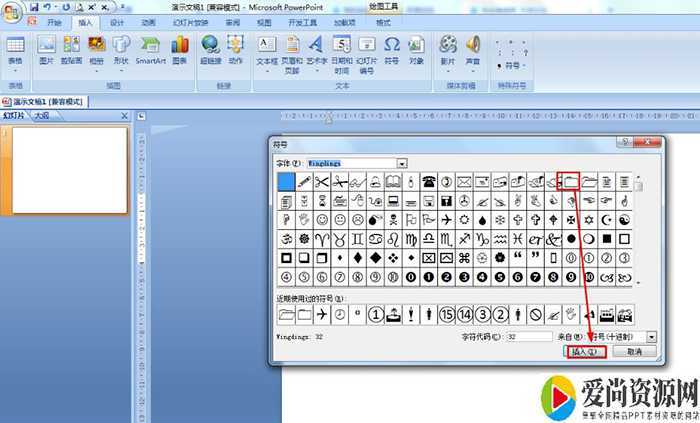 在文本框处于输入状态下点击插入——符号——选择Wingdings字体。