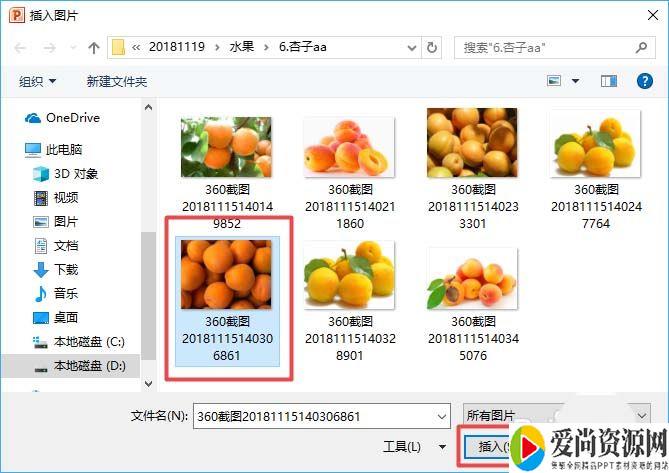 4、然后我们点击选中一张图片,之后我们点击插入;