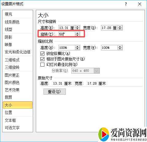 7、我们设置成50°的旋转,然后我们点击关闭;