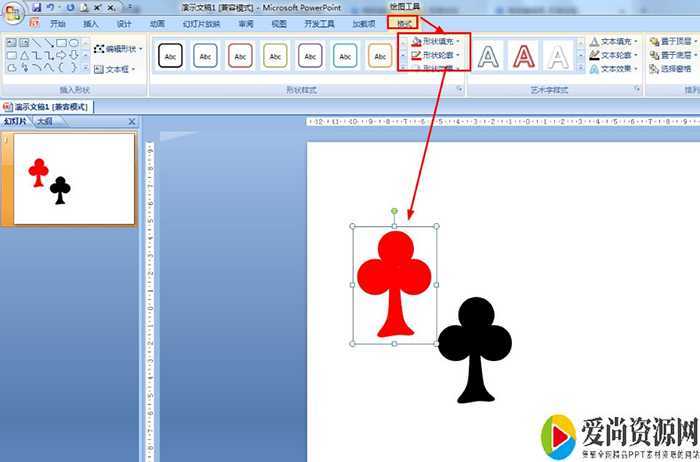 开始——形状填充,选择黑色——形状轮廓选择黑色。