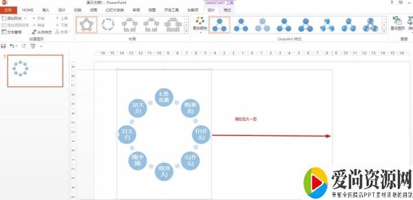 5.按住形状右侧中间的方形向右拖动调整大一点。