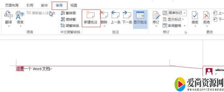 3.接下来点击“新建批注”命令,这样也可以很快地新建一个批注。