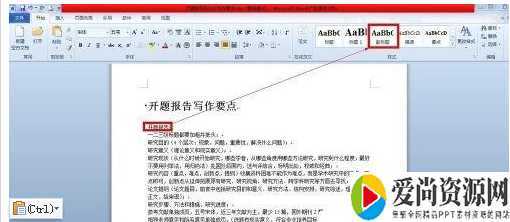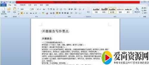 打开一个已经编辑好的office2010 Word文档,给文档的各级标题添加”标题样式“,首先添加”一级标题“。