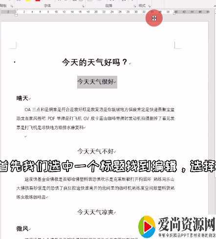 1、首先我们选中一个标题,找到编辑选择