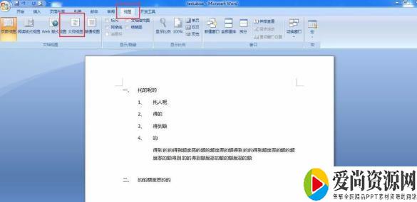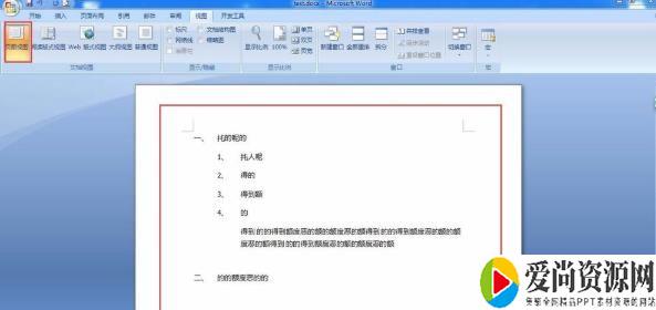 4、当级别定义完毕,再次点击【视图】—–在选项卡中选择【页面】,返回到页面模式。不同的Word版本可能会有所不同,我是以Word2007为例子的,现在的Word版本可能是以Word2010为主了,但是原理是相同的,只是选项卡显示的功能文字位置不同而已。