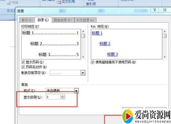 6、在弹出的目录对话框中,选择你要插入几个级别的标题,就输入几。如下图,我是选择3个级别的标题,那么我输入的就是3。