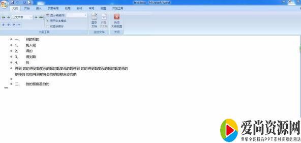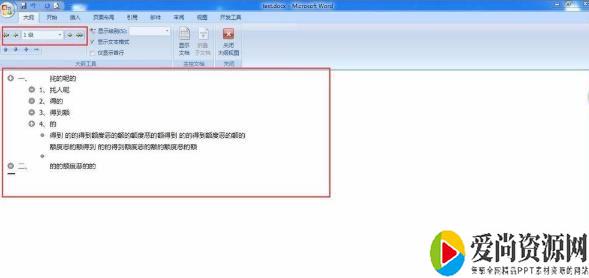 3、在大纲视图模式下,非常清晰地标注着各级级域。我们可以选择文字,然后依次注明该文字是第几级别,可以用数字1,2,3,。。。。。。。来分别表示是第一、二、三。。。。。。。级别的。