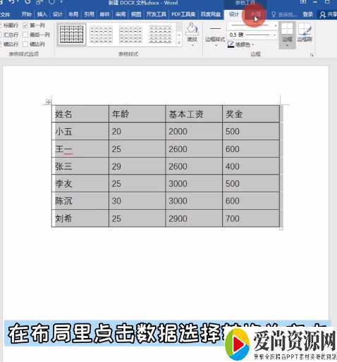 2、表格怎么转换为文档,先选中表格,再布局与点击数据,选择转换为文本,然后勾选置表格,这样就搞定了。