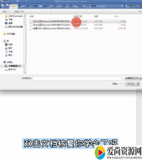 2、选择恢复未保存文档,就可以找到这些你不小心丢过的文档了。双击文档恢复你学会了吗?